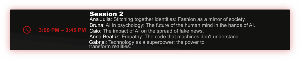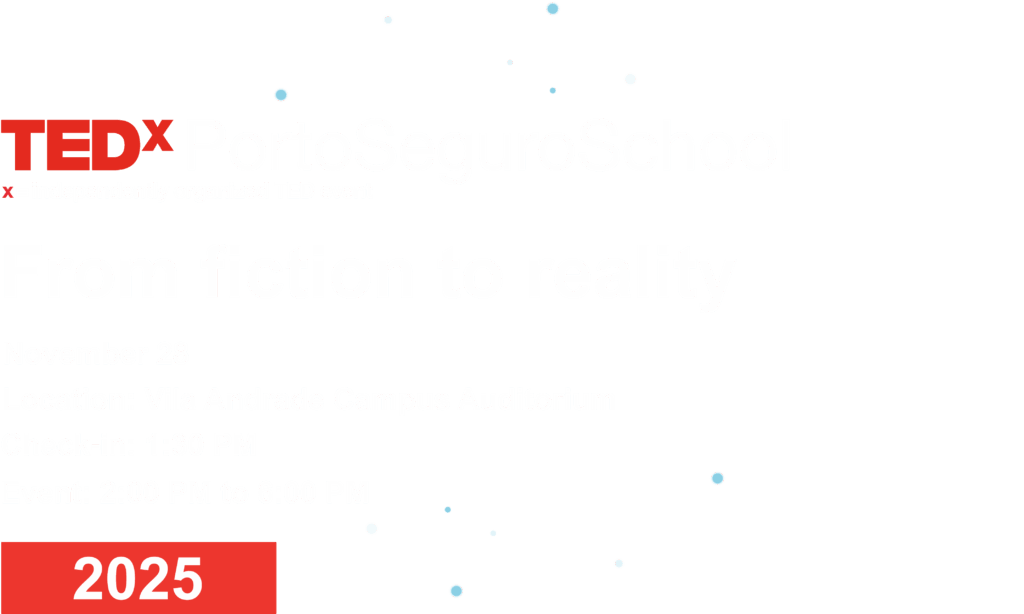 In 2025, TEDxPortoSeguroSchool will reach its 3rd edition at the Vila Andrade Campus with the theme “From Fiction to Reality”. Seventeen speakers will bring reflections on how fiction has inspired advances in science, technology, and culture – from artificial intelligence to social change. Together, they will pose a provocative question: what futures do we want to imagine and build?